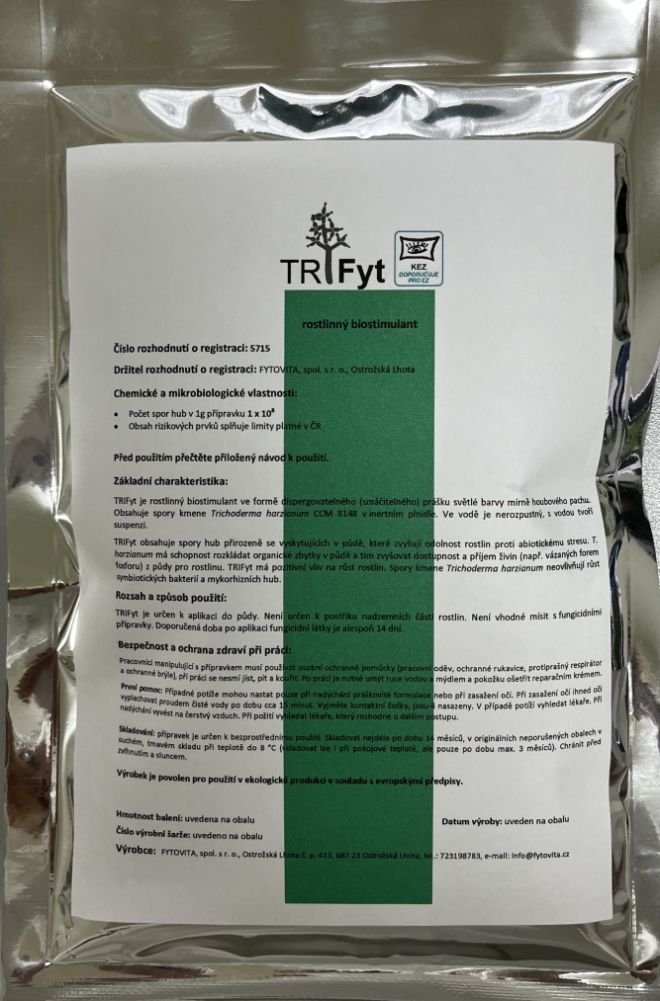 Rostlinný biostimulant TriFyt obsahuje spory druhu Trichoderma harzianum, přirozeně se vyskytující půdní houby. Tato houba žije v symbióze s kořeny rostlin, zvětšuje objem jejich kořenového systému a tedy celkovou plochu pro příjem vody a živin (např. fosforu). Napomáhá zlepšení kondice rostlin, ovlivňuje aktivitu fotosyntézy, růstu a celkovou produkci a pomáhá chránit před suchem.
